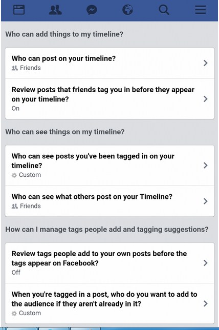 اذهب إلى الإعدادات، اضغط على علامة تبويب الخصوصية، ويمكنك منها التحكم بمن يمكنه الاطلاع على المشاركات المستقبلية وقائمة الأصدقاء الخاصة بك.