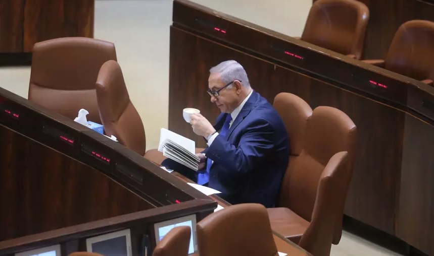 وأشارت الصحيفة إلى صورة نشرها موقع "لدعت"، وفيها ظهر نتنياهو جالسا على مقعده في الكنيست حيث يحضر جلساته طوال الأسبوع، ومن ضمنه التصويت الماراثوني على عدد من القرارات قبل بدء العطلة الصيفية بعد نهاية جدول الأعمال المطروح مساء غد الأربعاء، وقد تمتد إلى مساء الجمعة بسبب مواقف المعارضة.
