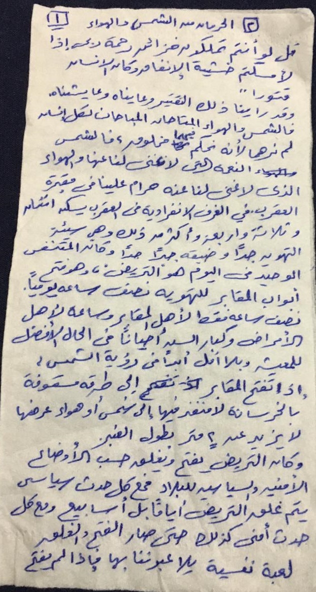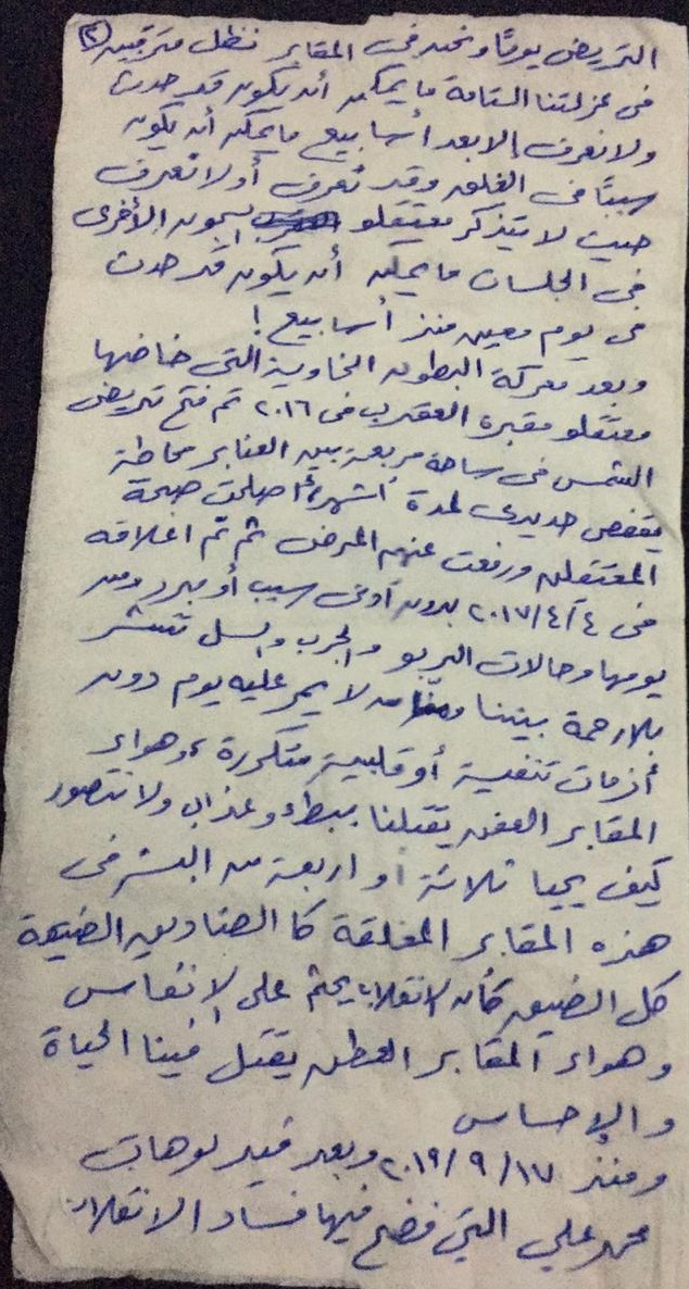 المعتقلون في رسالتهم: "هواء المقابر العفن يقتلنا ببطء وعذاب، ولا نتصور كيف