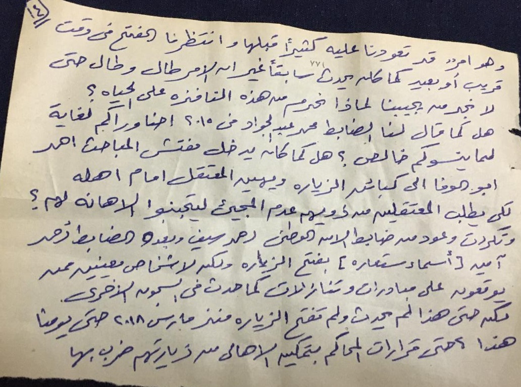 سيف، وبعده الضابط أحمد أمين (أسماء مستعارة) بفتح الزيارة، ولكن لأشخاص مُعينين ممن