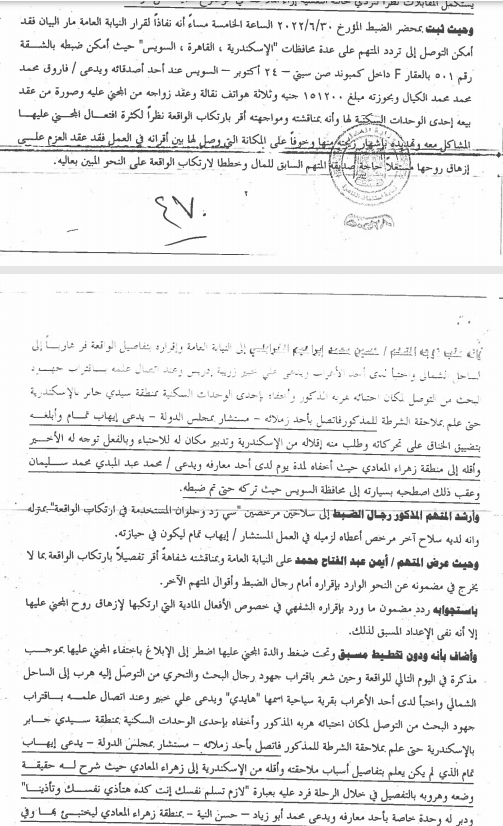 وقد أقر المستشار إيهاب أحمد تمام في التحقيقات، بأن زميله وصديقه المتهم الأول "المستشار أيمن حجاج"، هاتفه بتاريخ 27 حزيران/ يونيو 2022 لكي يحضر إليه بمحافظة الإسكندرية لتوقيع أحكام الجلسة القادمة بالدائرة محل عملهما.
