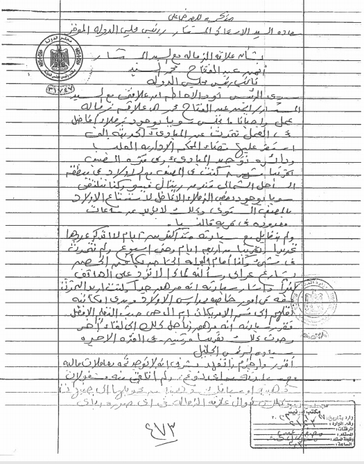 وبالفعل أرسل المستشار عادل عطية الله رسلان أحمد نائب رئيس مجلس الدولة، مذكرة بخط اليد مؤرخة في 27 حزيران/ يونيو 2022 إلى رئيس مجلس الدولة، يوضح فيها اعترافاته وعلاقته بالجاني.